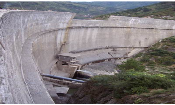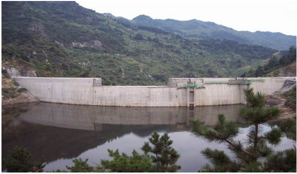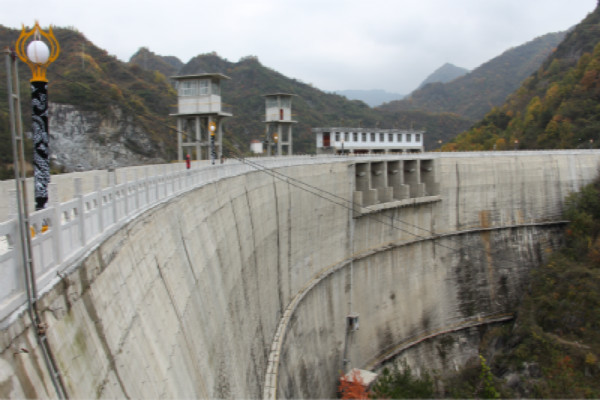 該工程位于勉縣二道河鄉褒河支流沙溝河中段,壩頂寬4.0m、底寬16m、壩高55m、壩頂弧長220.78m,為變三心雙曲拱壩。該壩壩體結構復雜,此雙曲拱壩結構為陜西第一座,技術含量較高。該工程于1998年9月1日開工,2003年1月31日竣工。